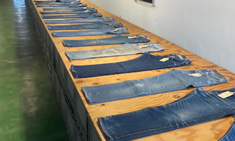 Unique denim project where workers wear jeans for a year, creating authentic "used" denim with real stories.